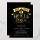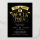 Avec les mots "Just a bunch of Hocus Pocus" dans une feuille d'or brillante et style typographique rétro et ornés de chauves-souris, lune, filets et une petite araignée sur BLACK ces invitations de fête d'Halloween sont parfaites pour invitation vos amis et votre famille! Personnalisez avec les détails de votre fête d'Halloween en dessous en lettres blanches sur un arrière - plan noir. Les couleurs sont changeantes !
