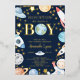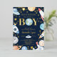Gold Foil invitation pour la douche pour bébé avec un astronaute, des fusées, des planètes & étoiles sur un arrière - plan bleu foncé. Retournez notre invitation mignonne aux garçons pour voir une étoile de tir de coordination. Visitez notre boutique pour toute notre gamme, y compris les cartes de tirage de tombola et de livre correspondantes.