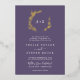 Cette feuille minimale violet et feuille d'or en une seule faire-part de mariage est parfaite pour un mariage de saumons. Le design des tons de bijoux est composé d'une simple silhouette de feuilles verdoyantes, d'un violet bleu foncé et d'un style boho minimaliste, avec de luxueux motifs en feuille pressée. Personnalisez avec les initiales du couple. Enregistrez du papier en incluant les détails au verso du faire-part de mariage plutôt que sur une carte de boîtier séparée. Inclure également les informations RSVP si votre invité répondra par voie électronique (facultatif).