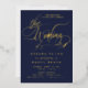 Doté de luxueux motifs dorés et d'une bordure bleu marine profonde, ce design allie élégance classique et romantisme moderne. Parfait pour les mariages officiels, les cravates noires ou les cérémonies du soir, cette invitation peut être customisée avec vos noms, date et détails mariages pour refléter votre histoire d'amour unique.