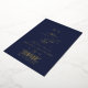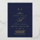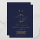 Ce romantique faire-part de mariage de monogramme bleu marine en feuille d'or est parfait pour un simple mariage. Le design classique moderne présente des tourbillons fantaisistes et des fleurs fantaisistes avec une superbe élégante typographie estampillée à la main en feuille d'or sur un arrière - plan bleu foncé.
