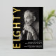Ajoutez un peu de Luxe à ce design populaire en ajoutant des lettres de feuille d'or. Moderne Invitation 80e Anniversaire - Design dispose d'un arrière - plan noir qui peut être changé à n'importe quelle couleur, une photo de portrait, le texte 'HUITIÈME' en gras véritable feuille d'or et un élégant modèle de fête d'anniversaire qui peut facilement être personnalisé. Elégant, tendance et parfait pour tout âge !
