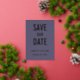 Simple modèle moderne de Save the date avec typographie et superposition de photo. Personnalisez le modèle avec vos détails de mariage et couleurs de fond de photo, etc.