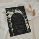Notre faire-part de mariage de fleurs d'ivoire entoure vos détails de mariage avec une arche gracieuse de verdure aquarelle peinte, feuilles d'eucalyptus, feuillage botanique et fleurs de roses et de pivoines blanches. La finition en feuille d'or et le lettrage d'accent ajoutent une finition luxueuse à ce magnifique design.