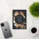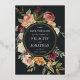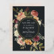 Notre jardin floral moderne Moonlight Garden économisez les images de la carte de date vos principaux détails mariages, y compris la date et l'emplacement, à l'intérieur d'une luxuriante bordure botanique de maman rose aquarelle, feuilles verts et feuillage. Des teintes d'automne poussiéreuses de bordeaux, marsala, rougissement et ivoire pop contre un arrière - plan noir doux aux accents dorés. Personnalisez avec vos noms, date mariage, emplacement et site Web mariage en utilisant les champs fournis.