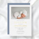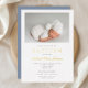 Invitation En Aluminium Jeu d'or bleu moderne Dusty Script Photo Boy Baptê