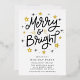 Invitation Joyeuse Et Lumineuse Soirée Noire Gold. Ce magnifique design présente une typographie avec les mots Merry & Bright accentué avec des étoiles noires et vraies en feuille d'or. Personnalisez ce design de vacances personnalisé avec vos propres détails de fête. Parfait pour un dîner de Noël en famille ou pour une fête de vacances en entreprise!