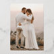 Invitez vos amis et vos proches à votre réception de mariage avec cette invitation texte feuille d'or rose pour partager votre joie de votre mariage récent. Une image du couple heureux est présentée au verso.