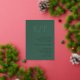 Elégante invitation de mariage avec un design chic et contemporain avec un agencement minimal. En haut se trouve votre monogramme dans un grand format gras et en bas, vous trouverez les détails de votre événement dans le bon alignement pour une touche moderne. Le verso contient un modèle pour plus de détails et vous pouvez supprimer le texte dans ce champ si vous préférez laisser le verso vide. La palette de couleurs est vert chasseur avec vos détails en papier d'aluminium, ce qui rend cette invitation idéale pour un mariage automne / automne ou hiver, mais peut être mis à jour à toutes les couleurs que vous choisissez dans l'outil d'édition de conception.