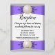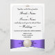 Invitation vos invités à votre mariage avec une belle cérémonie de mariage personnalisée et invitation à la réception. Cette carte à plat est dotée d'une perle vierge et d'un ruban violet lavande sur un arrière - plan brillant en feuille d'argent. La carte est imprimée en couleur avant et arrière. Bien que cette invitation soit une touche merveilleuse à toute saison, les douces couleurs lavande, gris et argent réfléchissant ainsi que la perle brillante s'adaptent parfaitement à un mariage de printemps. Toutes les informations importantes concernant votre mariage sont élégamment affichées sur le devant de l'invitation. Assurez-vous d'inclure le nom de la mariée, du marié et du lieu de la cérémonie. La date et l'endroit où la cérémonie aura lieu figureront également au recto de la carte. Toutes les informations de réception peuvent être affichées avec élégance au verso de la carte. Le nom et l'emplacement de la réception apparaissent au verso de la carte. De plus, vous pouvez inclure votre site Web mariage ou un courriel au verso de la carte. Veuillez noter que le papier argenté brillant n'apparaît qu'à l'avant de la carte. L'arrière dispose d'un arrière - plan gris basique.