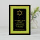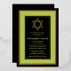 Élégant véritable feuille d'or, vert citron et noir Star de David Bar Mitzvah invitation. Pour modifier le texte, utilisez les options de personnalisation. Pour des modifications plus poussées du texte, y compris la modification de la police, de la couleur de la police, de la taille de la police et/ou de l'emplacement du texte, utilisez l'option "customiser". Cette élégante feuille d'or véritable et l'invitation de Bar Mitzvah vert citron est un choix agréable pour un design classique. Élégant et sophistiqué. Les parties en or de cette invitation sont imprimées à l'aide d'une véritable feuille métallique d'or. Le noir Arrière - plan et le vert citron peuvent être changés dans l'outil de conception. Vous devrez également modifier la couleur de l'élément rectangle du calque avant.