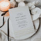 Propre et moderne, notre faire-part de mariage de Lineation en noir et blanc chic dispose d'une bordure supérieure et inférieure de lignes dorées croisées. Personnalisez avec vos détails mariages en lettres noires modernes dans un combo élégant de casquettes serif italique et sans serif. Les invitations se retournent vers le gris ultra-pâle solide.