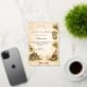 A cozy woodland baby shower design inspired by a gentle forest adventure. Illustrated with rustic greenery, pinecones, and a charming “little hunter” clothesline detail, this storybook-style layout feels warm, nostalgic, and nature-loving. Perfect for parents who love the outdoors, woodland themes, or rustic nursery aesthetics.