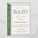 Plat d'or et invitation à la douche bébé bleu clair conçu comme une couverture de livre. Idéal pour un baby shower de construction de bibliothèque. Pour les objets correspondants, visitez le site https://www.zazzle.com/store/violinevents