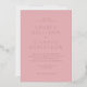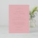 This elegant wedding invitation features a soft pink background with sophisticated gold typography, creating an air of timeless elegance and romance. The clean layout and minimalist design focus on the text, allowing for a classic yet modern feel that is perfect for a chic and intimate celebration. With its understated color palette and refined font style, this invitation exudes warmth and grace, making it ideal for couples who want to convey their special day in a tasteful manner. Customize the details to personalize your big moment, ensuring every guest feels welcomed into your joyous occasion.