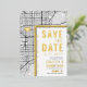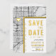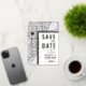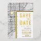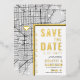 Une carte d'invitation "save-the-date" unique en vedette une carte de la ville de Miami, en Floride. Elle présente plusieurs caractéristiques uniques qui font une impression sur vos futurs invités, y compris les noms des mariés, le nom de la ville et les mots "Save the Date" en feuille d'or. Un symbole de cœur en feuille d'or indique votre lieu d'amour dans la ville. La carte de la ville est sur les côtés avant et arrière et peut être mise à l'échelle et déplacée. Tous les éléments de cette invitation sont déverrouillés, alors amusez-vous à être créatifs et à la rendre à votre goût.