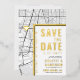 Une carte d'invitation "save-the-date" unique en vedette une carte de la ville de Long Beach, Californie. Elle comporte plusieurs éléments uniques qui font une impression sur vos futurs invités, y compris les noms des mariés, le nom de la ville et les mots "Save the Date" en feuille d'or. Un symbole de cœur en feuille d'or indique l'emplacement de votre amour dans la ville. La carte de la ville est sur les côtés avant et arrière et peut être mise à l'échelle et déplacée. Tous les éléments de cette invitation sont déverrouillés, alors amusez-vous à être créatif et à la rendre à votre goût.