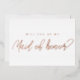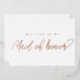 Carte de proposition moderne et minimale "Serez-vous ma servante d'honneur" avec police de calligraphie en feuille d'or rose.