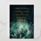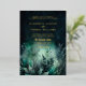 Une aquarelle fantaisie illustrant le feuillage luxuriant en vert émeraude, pétillant de lumières féériques et de poussière magique, décore cette invitation mariage de automne du printemps avec un thème forestier enchanté. Une invitation élégante et moderne à un mariage de conte de fées, il présente également l'impression de feuilles d'or pour une touche de luxe supplémentaire. Parfait pour les mariées qui aiment le cadre de la forêt de contes de fées, la forêt de fées ou le thème du jardin de fées et vert émeraude.