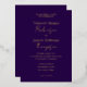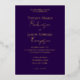 Avec un vrai papier doré sur un arrière - plan violet solide, cette faire-part de mariage est de luxe ! Les options pour changer la feuille en argent ou en or rose sont disponibles. La police de script contemporaine, se trouve au milieu de l'invitation, tandis qu'un texte sans serif compose le reste de l'invitation. Une toile violette vierge constitue le dos de la carte.