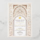 Invitation vos invités à un mariage vraiment élégant avec ce luxueux faire-part de mariage d'inspiration islamique. Dotée de motifs floral et géométriques complexes, cette invitation est ornée de somptueux motifs dorés qui mettent en valeur le design détaillé. L'avant présente un motif d'arcade élaboré dans les tons d'ivoire, de beige et d'or doux, créant un look sophistiqué et intemporel. Le dos poursuit le thème avec un design floral sans soudure et un monogramme, ce qui en fait un endroit parfait pour un mariage raffiné et mémorable. Idéal pour les couples qui apprécient la beauté de l'art et de l'architecture islamiques, cette invitation donne le ton d'une grande fête.