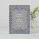 Ce magnifique design de faire-part de mariage d'inspiration papel picado présente un cadre orné en feuille d'argent, un arrière - plan bleu coloré et une typographie moderne. Ce design élégant et moderne est un choix fabuleux pour un mariage latino ou un mariage de destination mexicaine. Vous pouvez customiser encore plus ce design en ajoutant une photo ou un texte supplémentaire à l'arrière-plan. Le pétrole est disponible en or, argent ou or rose et brille absolument ! Sélectionnez de vraies invitations de mariage pour ajouter ce facteur wow! ! Ce design est également disponible en format non papier (voir la collection ci-dessus)...