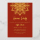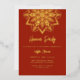 Invitation en feuille d'or véritable pour fête Henna Mandala rouge et or. Facile à personnaliser avec les détails de votre fête Mehendi.