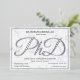 Une invitation à une soirée de doctorat avec feuille d'argent, texte gris et un arrière - plan en marbre. Ajoutez simplement vos informations, ajoutez cette invitation à votre panier et célébrez cette réalisation majeure. Marbre Argent Blanc PhD Graduation Foil Invitation Conception vacances | ©Melissa Patton - Designer