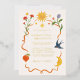 Un faire-part de mariage fantaisiste avec des fleurs colorées peintes à la main, des illustrations de soleil, de lune et d'étoiles avec un élégant lettrage en feuille d'or. Le design ludique et sophistiqué mêle des oeuvres d'art vibrantes à un texte de papier peint chatoyant, ce qui en fait un lieu idéal pour les couples qui veulent une touche joyeuse, artistique et unique à leur papeterie mariage.