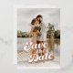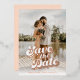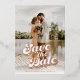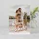 Un mariage sauvez la date avec une photo personnalisée et une feuille d'or rose imprimé typographie de style rétro est une façon unique et élégante d'annoncer vos nouveautés à vos amis et votre famille. La photo personnalisée est une touche spéciale qui ajoute un élément personnel et sentimental à la conception, tandis que l'impression de feuille d'or rose ajoute une touche de glamour et de sophistication. Ce design est sûr d'impressionner et de rendre tout le monde excité pour votre grand jour.