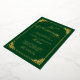 Invitation En Aluminium Mariage Anniversaire Élégant Cadre Vert Or Réel