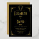 Ce faire-part de mariage art déco des années 1920 chic noir et véritable doré peut être personnalisé avec vos informations en typographie stylisée. Conçu par Thisisnotme©