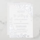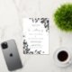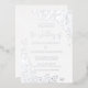Ce faire-part de mariage en feuille d'argent moderne a un look mariage blanc classique avec une impression réelle de feuille. Modifiez facilement le modèle pour obtenir les détails souhaités. Le dos de l'invitation est vide, lui donnant une finition élégante, en se concentrant sur vos détails et la feuille magnifique. Le motif argenté est composé d'éléments eucalyptus de feuilles et de baies. Invitation classique Mariage blanc à huile d'argent.
