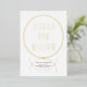 Cette belle faire-part de mariage présente un design contemporain avec un cadre doré. À l’intérieur du cadre, les noms du couple sont affichés contre un arrière - plan blanc. À côté du cadre se trouvent deux demi-cercles qui se chevauchent et qui ressemblent à un étouffeur de fil pour un charme supplémentaire. Le dos de l’invitation a une touche sophistiquée avec les noms du couple élégamment affichés en diagonale en or sur blanc.