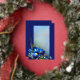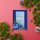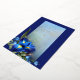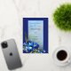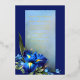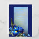 Belle faire-part de mariage bleu foncé avec une zone de texte bleu clair et des graphiques d'un grand iris bleu, sur le fond. Personnalisez le texte du feuillet pour votre célébration mariage.