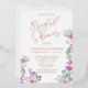 Conception botanique élégante à l'aquarelle. Cette œuvre d'art originale présente des florales délicates de rose et de pivoine avec de l'eucalyptus et des frondes de feuillage complémentaire. Facile à personnaliser avec vos propres détails.