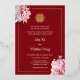 Ce faire-part de mariage chinois moderne est doté d'une véritable feuille d'or double symbole de bonheur et de fleurs de pivoines aquarellées sur un arrière - plan rouge. Avec un texte chinois traditionnel à l'envers.