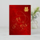 Ce faire-part de mariage chinois moderne est doté d'une véritable feuille d'or double symbole de bonheur et d'un "Mr and Mrs." Script de calligraphie. Le texte de l'invitation est à l'arrière.