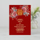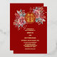 Ce faire-part de mariage chinois moderne est doté d'une véritable feuille d'or double symbole de bonheur et d'aquarelle peinte fleurs roses sur un arrière - plan rouge.