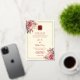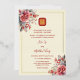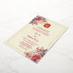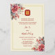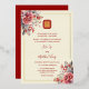Ce faire-part de mariage chinois moderne est doté d'une véritable feuille d'or double symbole de bonheur et d'aquarelle peinte fleurs roses sur un arrière - plan crème. Le côté arrière a le même ton rouge que le script. Veuillez cliquer sur "modifier la conception" si vous voulez changer le côté arrière en blanc.