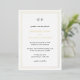Faire-part de mariage en feuille d'or classique avec un design simple et minimal avec votre monogramme en haut et vos détails de l'événement entouré d'une double bordure. Les fontes alternent entre un script élégant, une fonte serif traditionnelle et minimaliste sans serif. Vos noms et vos bordures sont en papier d'aluminium et le texte restant est en encre noire. Cette invitation est idéale pour un mariage officiel.