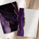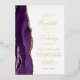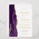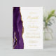 Le bord gauche de cette élégante faire-part de mariage moderne est orné d'une bordure d'aquarelle violette ornée d'une parties scintillant en faux or. Le texte personnalisable combine écriture manuscrite, copperplate et polices italiques en feuille d'or réelle sur un arrière - plan blanc. L'envers est assorti d'une agate violette et dorée.