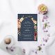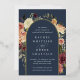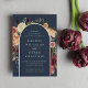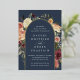 D'élégantes invitations à des mariages fleuris ou des mariages d'automne ou d'hiver présentent vos détails encadrés par une arche de roses d'aquarelle, de mamans et de verdure aux couleurs d'automne rustiques, y compris la pêche, l'ivoire, le rougissement, le bordeaux et le vert, avec des garnitures élégantes en feuille d'or. Un design moderne et élégant pour des mariages rustiques chic en automne ou en hiver.