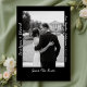 Annoncez votre journée spéciale avec une élégance audacieuse en utilisant ce mariage noir moderne enregistrer la carte de date. L'avant présente une photo personnalisable, magnifiquement contrastée par du texte en papier argenté dans un style manuscrit qui ressemble à des annotations artistiques ; parfait pour ajouter vos noms et date mariage avec une touche de sophistication et de personnalité. L'arrière - plan noir riche ajoute une sensation dramatique et moderne, tandis que le dos offre un texte entièrement personnalisable pour partager des détails mariages supplémentaires. Idéal pour les couples qui aiment le design élégant et élégant avec une touche créative et personnelle.