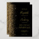 Le bord gauche de cette élégante faire-part de mariage moderne présente un style de parties scintillant en faux or. Le texte personnalisable combine l'écriture manuscrite en papier or, les polices en cuivre et en italique sur un arrière - plan noir. L'envers est assorti d'une parties scintillant en noir et or.