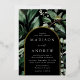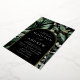 Invitations de mariage élégantes avec vos détails mariages nichés à l'intérieur d'un cadre en papier doré et noir voûté entouré d'eucalyptus, de fougères et d'autres riches verdure. Les invitations de mariage de l'arc botanique se retournent vers un arrière - plan vert foncé et solide. Conçu pour coordonner avec notre collection de mariages de verdure Abondante.