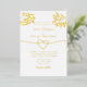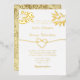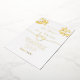 Moderne, élégant, faire-part de mariage blanc pur avec coeur de la corde en feuille d'or, végétation d'eucalyptus et calligraphie simple.