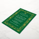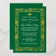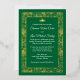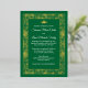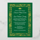 Ce faire-part de mariage entièrement personnalisable a une bordure florale en feuille d'or complexe sur un arrière - plan vert kelly avec une feuille d'or symbole Claddagh qui représente l'amour, la loyauté, et l'amitié au sommet de la formulation qui est en blanc et a aussi le sens du Claddagh dedans, mais vous pouvez le changer pour dire ce que vous voulez. Vous pouvez également sélectionner des couleurs de feuille d'or argent ou rose et vous pouvez changer la couleur de l'arrière - plan vert à n'importe quelle couleur que vous voulez en utilisant le mode "modifier en utilisant l'outil de conception". Il y a aussi une carte postale RSVP en feuille d'or assortie.
