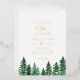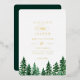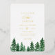 Faire-part de mariage rustique de la forêt aquarelle. De beaux arbres peints dans des tons verts à la mode avec un support couleur émeraude coordonné. L'invitation présente la typographie de feuille d'or chic style design mélange de calligraphie et de type audacieux.