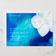 Faire-part de mariage avec Fleur blanche neige sur arrière - plan d'eau claire et claire, peinture turquoise azurée à l'aquarelle, arrière - plan floral clair de printemps ou d'été. Lys blanc botanique élégante Faire-part de mariage fleurie florale. Collection Ressortissante.